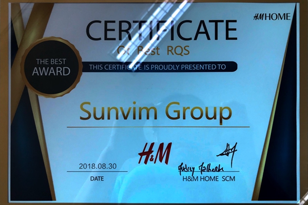 孚日獲H&M全球供應(yīng)閃“最佳質(zhì)量獎”