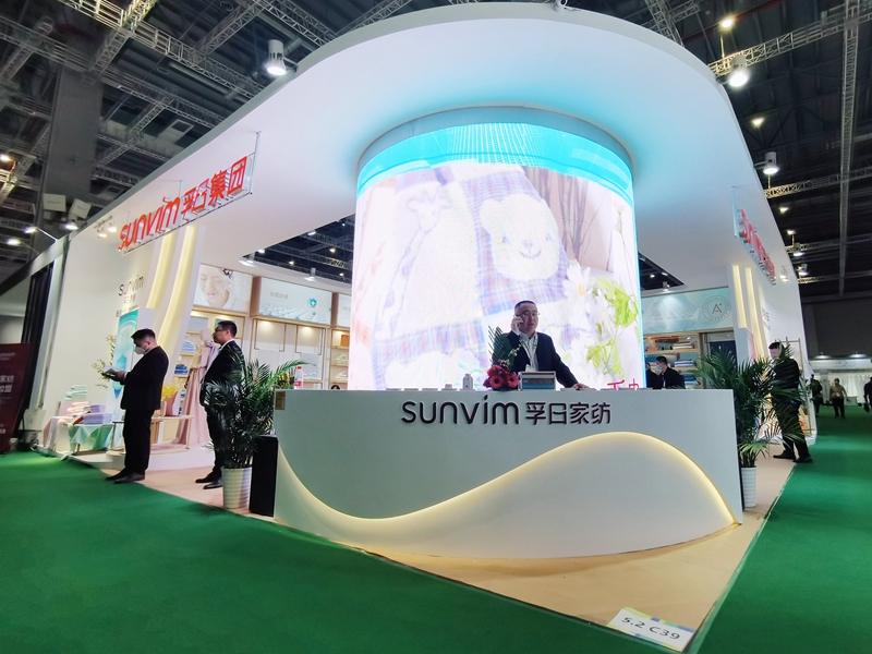 (圖為孚日集團副總經理、國內品牌運營總負責人孫浩博帶隊參加上海春夏家紡展,中國紡織工業(yè)聯(lián)合會會長孫瑞哲、中國紡織工業(yè)聯(lián)合會副會長、中國家用紡織品行業(yè)協(xié)會監(jiān)事長楊兆華參觀孚日展位)