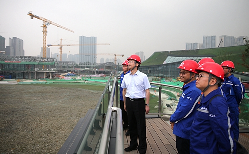 朱永繁董事長一行先后來到公司九花新型社區(qū)和天府藝術公園建設現(xiàn)場,聽取了項目策劃、工期進度、技術創(chuàng)新、創(chuàng)優(yōu)創(chuàng)獎、形象展示、安全環(huán)保管理等方面的情況匯報,詳細查看了項目主體建筑及裝飾裝修品質細節(jié),并代表集團公司對廣大員工辛勤勞動,敬業(yè)奉獻,端午節(jié)期間堅守奮戰(zhàn)在一線表示感謝和問候。