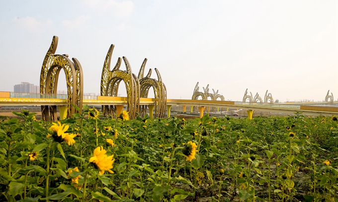 五冶承擔(dān)裝飾工程的成安渝橋位于成都市繞城高速內(nèi)側(cè),以市樹“銀杏”為主題,全長1502米,高顏值的“樹洞”造型一經(jīng)亮相便火爆出圈。據(jù)悉,“樹洞”造型采用全鋼結(jié)構(gòu),最大高度30.8米,最小彎曲半徑僅有3.2米,在整座橋梁裝飾裝修的過程中,項目團(tuán)隊采用了三維激光掃描、激光切割等先進(jìn)技術(shù),最大程度還原“樹洞”和“樹枝”形態(tài)各異的造型。