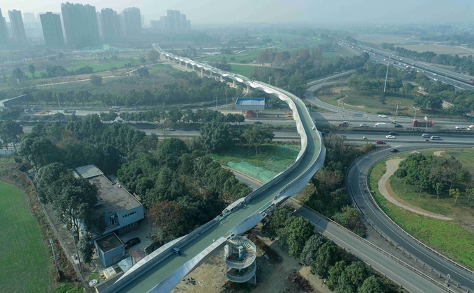 星河走廊——北星大道橋梁位于成都市繞城高速內(nèi)側(cè),跨越北星大道及王賈路,全長1629米,橋身隨勢起伏,形如魚腹,造型十分精美。項目團(tuán)隊通過BIM技術(shù)及更加先進(jìn)的模板架設(shè)工藝,最終完美呈現(xiàn)出完美的混凝土表面質(zhì)感,確保了“魚腹”品質(zhì)。