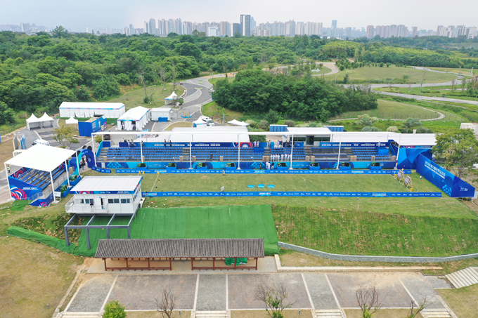 世運會射箭、拔河等比賽觀眾席設置在成都東安湖體育公園中央廣場、青龍湖濕地公園,超1萬名海內外觀眾在這里吶喊歡呼。為支撐世運會觀賽需求,五冶建設者掛圖作戰(zhàn),倒排工期,全力以赴,攻堅克難,在7天之內完成了964平方米棚蓋建設,覆蓋1060個看臺席位,全部采用裝配式鋼結構施工,最大限度降低對公園生態(tài)環(huán)境影響,賽后可快速拆除回收利用,做到安全環(huán)保。