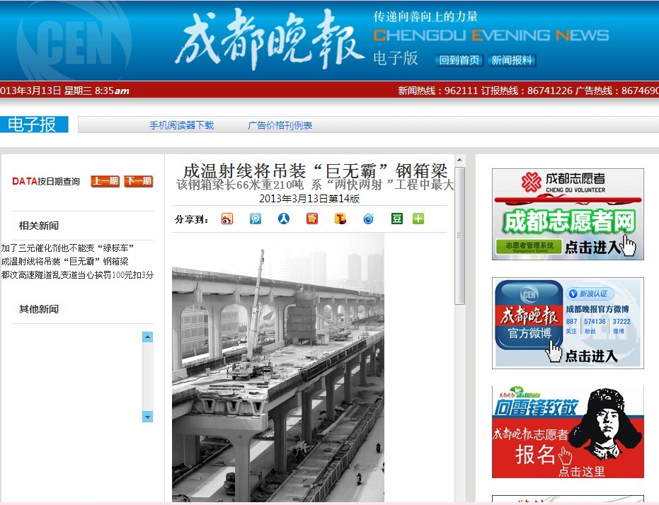 在成溫射線(xiàn),多段連續(xù)小箱梁已經(jīng)現(xiàn)身。2.5環(huán)至蘇坡立交段,截至上月10日,能吊裝的小箱梁已經(jīng)全部貫通,橋面系、路面工程全面施工;2.5環(huán)至二環(huán)段,除2.5環(huán)路口220米外,其他的橋面系、路面施工也已全面鋪開(kāi)。