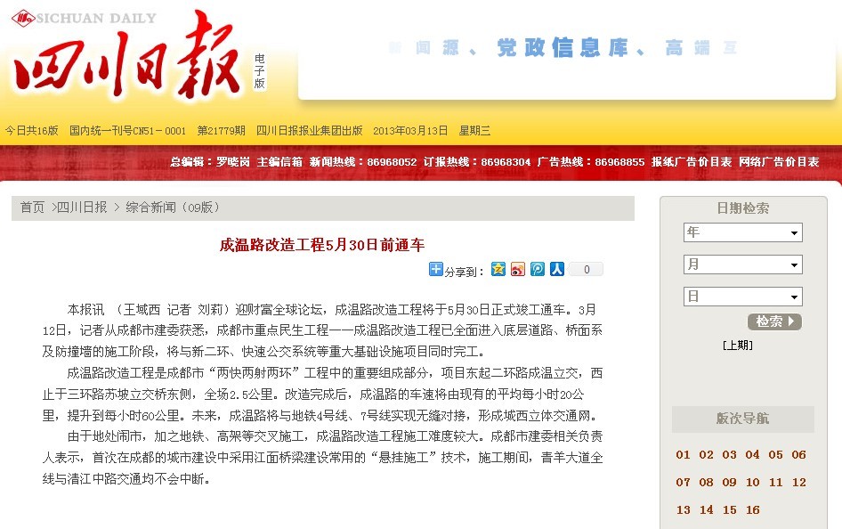 迎財(cái)富全球論壇,成溫路改造工程將于5月30日正式竣工通車。3月12日,記者從成都市建委獲悉,成都市重點(diǎn)民生工程——成溫路改造工程已全面進(jìn)入底層道路、橋面系及防撞墻的施工階段,將與新二環(huán)、快速公交系統(tǒng)等重大基礎(chǔ)設(shè)施項(xiàng)目同時(shí)完工。