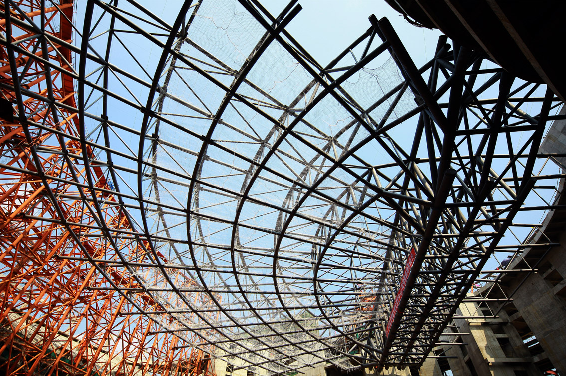 8月14日晚8時(shí),跨度達(dá)150米的中國五冶集團(tuán)成都大魔方演藝中心大陀螺鋼結(jié)構(gòu)屋蓋整體頂升成功,標(biāo)志著這個(gè)亞洲最大的室內(nèi)演藝中心屋蓋節(jié)點(diǎn)順利實(shí)現(xiàn),為大陀螺徑向桁架第二段及其余部分構(gòu)件的滑移施工奠定基礎(chǔ),這是中國五冶集團(tuán)在鋼結(jié)構(gòu)領(lǐng)域取得的又一次重大突破。