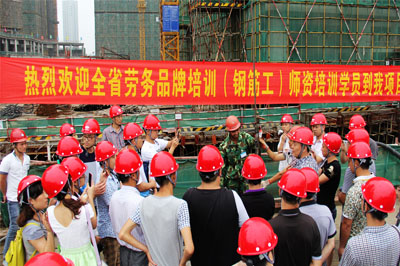 7月9日,四川省農(nóng)勞辦錢言部長攜全省勞務(wù)品牌鋼筋工師資培訓(xùn)學(xué)員到中國五冶集團東方天地項目部學(xué)習(xí)鋼筋加工、焊接工藝。教培中心主任張旭林等講授相關(guān)知識。