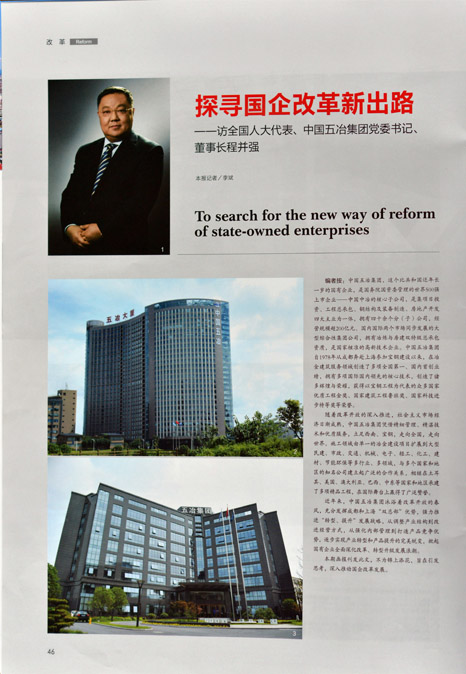 《當代中國》畫報2015全國“兩會”特刊,以“探尋國企改革新出路”為題,對中國五冶集團近年來轉(zhuǎn)型提升發(fā)展的歷程進行了梳理。
