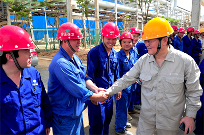 上午十時(shí)許,徐樂(lè)江興致勃勃地來(lái)到1B焦?fàn)t機(jī)側(cè),認(rèn)真聽取了焦?fàn)t施工及1B爐生產(chǎn)的情況匯報(bào)。他對(duì)五冶交出的1B爐答卷及1A、2B、2A爐施工情況非常滿意。在與現(xiàn)場(chǎng)五冶管理人員及工人代表握手時(shí)連聲說(shuō)道:'你們好,辛苦了,謝謝你們”!徐樂(lè)江希望在剩下的工期里,同志們繼續(xù)發(fā)揚(yáng)艱苦奮斗的精神,確保工程節(jié)點(diǎn)按期完成。