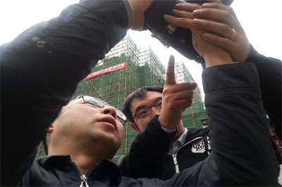 在項目現(xiàn)場實戰(zhàn)拍攝中,集團攝影師鄧超針對項目特點及各節(jié)點情況的分析,帶領大家就拍攝工程項目各大場面如何選位置及選時間,項目各重大節(jié)點期間如何找主題、尋主體、挑角度、等時機等逐一進行了實地踩點試拍,針對現(xiàn)場畫面的合理布局及構圖、利用適合的光線、施工人員的情態(tài)動作捕捉這三大要素結合自己的經(jīng)驗耐心分析和交流,在帶領大家進行的工地攝影創(chuàng)作中,大到攝影意識,小到握機方式都一一進行了講解。