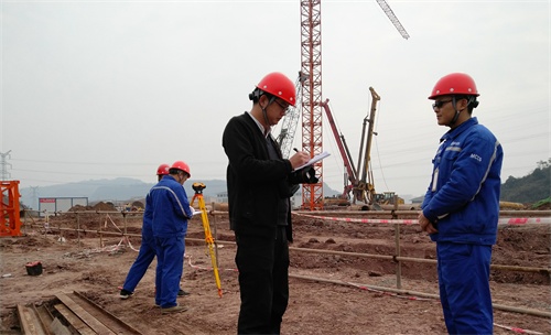 在陽光下,四川理工白酒學(xué)院(二期)工程的工地上已是人頭攢動(dòng)的情景。從大年初三開始,工地就開始復(fù)工,幾十名五冶員工分頭行動(dòng),投入到地勘、樁基、土建、土方等標(biāo)段的施工中。