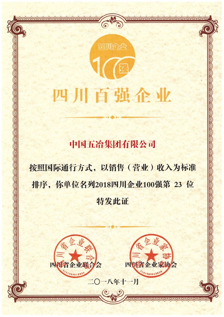 近日,2018年度四川省企業(yè)100強(qiáng)名單權(quán)威發(fā)布,中國(guó)五冶集團(tuán)有限公司位居23位,較去年提升兩位。?