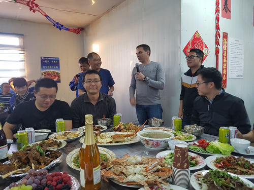 ? 聚餐開始,項(xiàng)目經(jīng)理舒真理及蒂森克虜伯現(xiàn)場經(jīng)理分別表達(dá)了對(duì)項(xiàng)目部全體員工一年來工作的認(rèn)可,同時(shí)表達(dá)了對(duì)大家新春的祝福。隨后項(xiàng)目部在年夜飯過程中穿插了一系列活動(dòng),大家在一片歡聲笑語中結(jié)束了除夕夜活動(dòng)。?? 因工作繁忙,遠(yuǎn)在沙特的五冶人無法回國與家人團(tuán)聚,這頓團(tuán)圓年飯緩解了廣大員工的思鄉(xiāng)之情,展現(xiàn)了公司、項(xiàng)目部對(duì)員工的關(guān)懷之情。短暫的休息兩天后,項(xiàng)目部員工將重回工作崗位之中,奮勇拼搏,為項(xiàng)目順利完工敬獻(xiàn)自己的一份力量。?