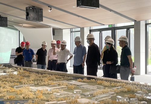 劉昕一行首先來(lái)到項(xiàng)目主題館參觀沙盤,觀看宣傳片,并登上屋面遠(yuǎn)眺項(xiàng)目建設(shè)情況。在隨后召開(kāi)的座談上,劉昕一行詳細(xì)聽(tīng)取了天府藝術(shù)公園項(xiàng)目基本概況、分段式施工許可辦理和現(xiàn)場(chǎng)管理情況的匯報(bào),并就關(guān)心的問(wèn)題進(jìn)行深入詢問(wèn),和與會(huì)人員展開(kāi)討論交流。與會(huì)領(lǐng)導(dǎo)對(duì)成都市分段式施工許可辦理工作給予了高度評(píng)價(jià),對(duì)中國(guó)五冶高品質(zhì)打造天府藝術(shù)公園表示肯定,要求進(jìn)一步完善建設(shè)工程管理流程,為加快公園城市建設(shè)提供更加便利的條件。
