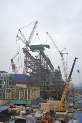 3月16日上午,由中國五冶集團(tuán)上海有限機(jī)電公司承建的寶鋼焦?fàn)t干熄焦項(xiàng)目提升機(jī)臺架吊裝完成。